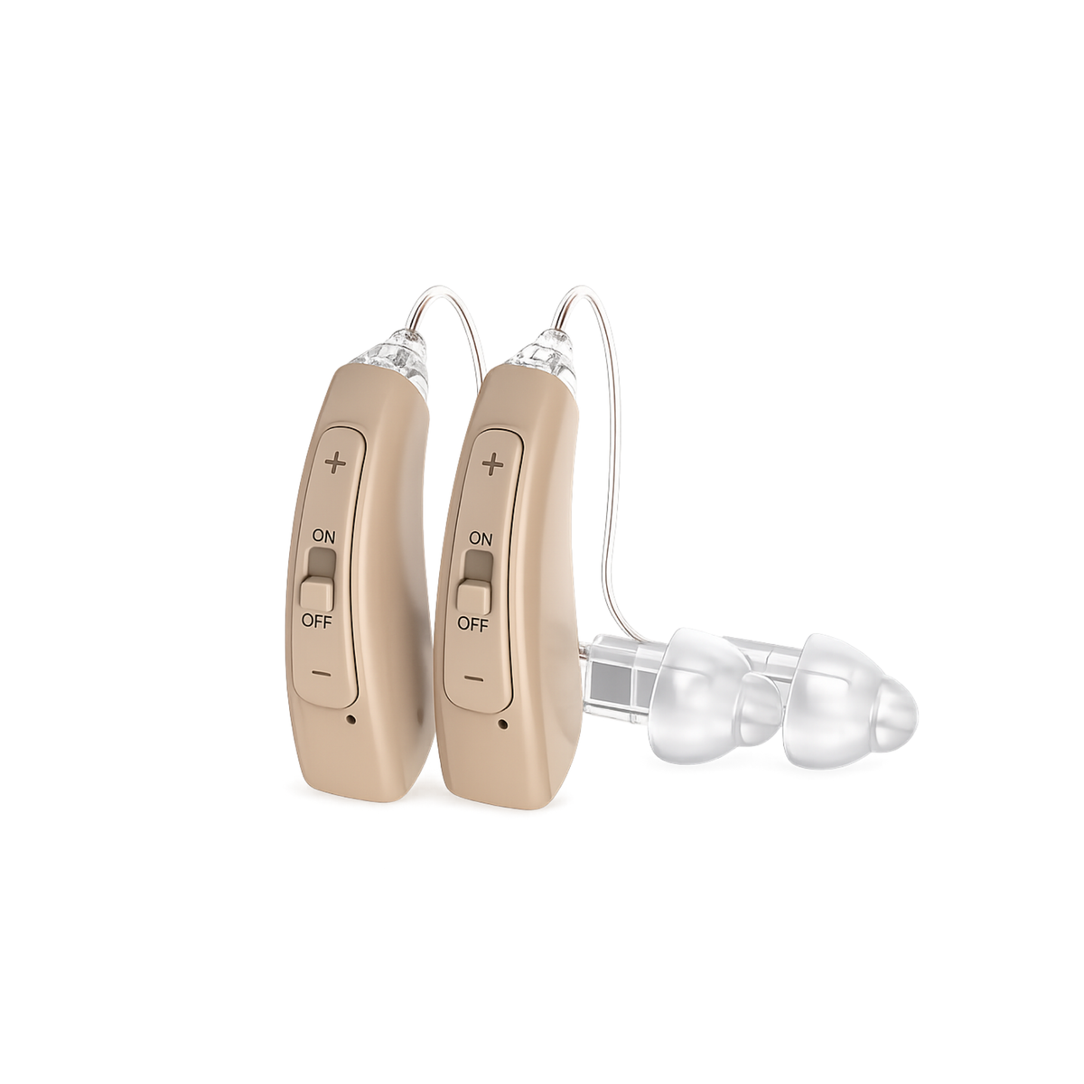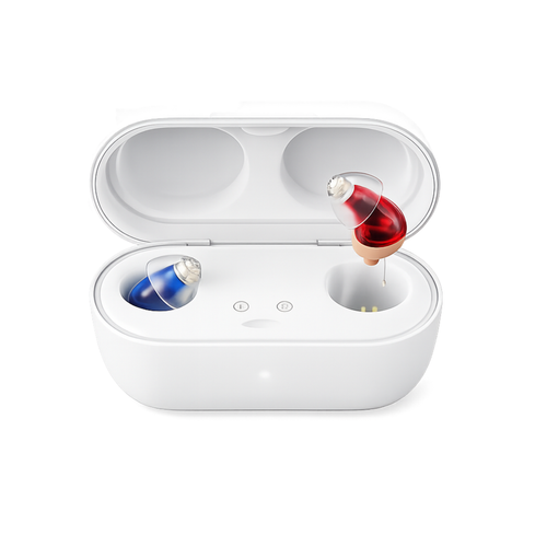 Denna hörapparat är lätt att använda och bekväm att bära hela dagen. Den ser ut som vanliga trådlösa hörlurar och ger klart ljud vid samtal, TV och vardagliga situationer.